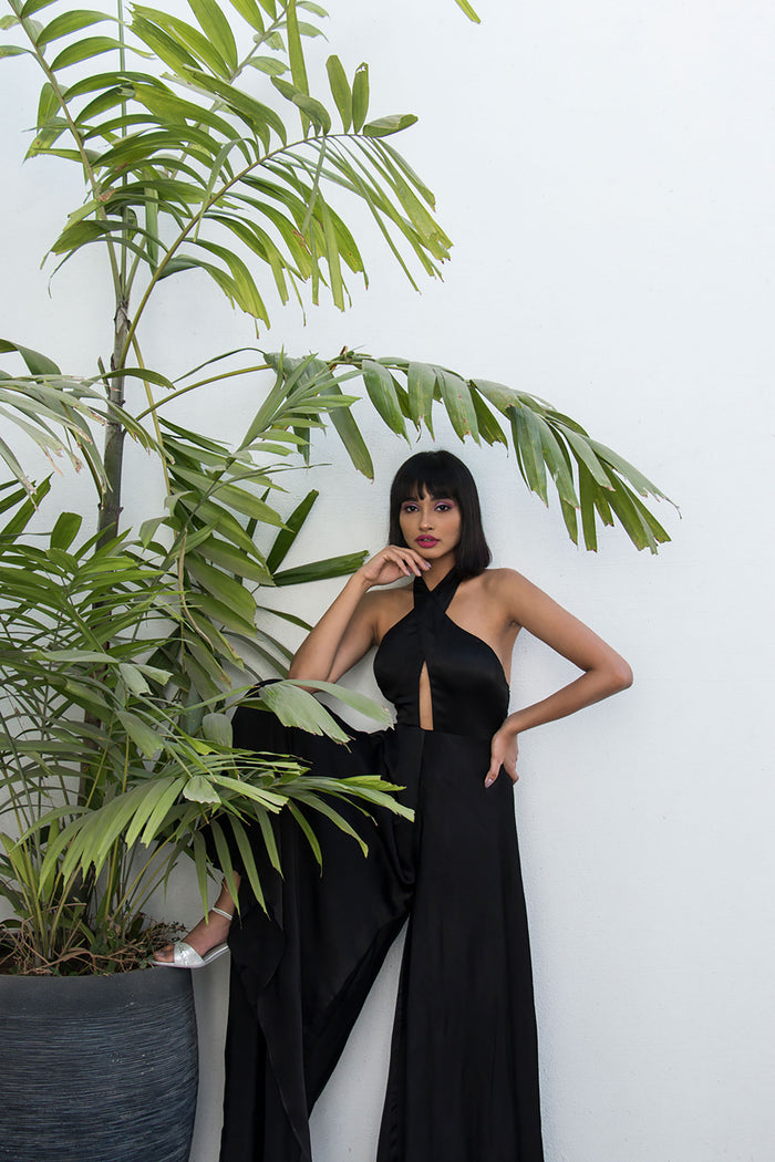 Celeste Cascade Green Drape Gown With Sequin Bustier Detailing