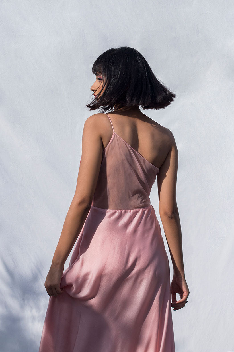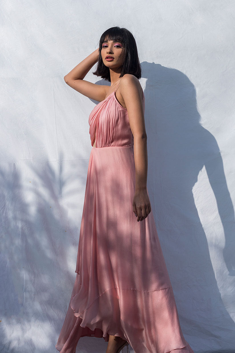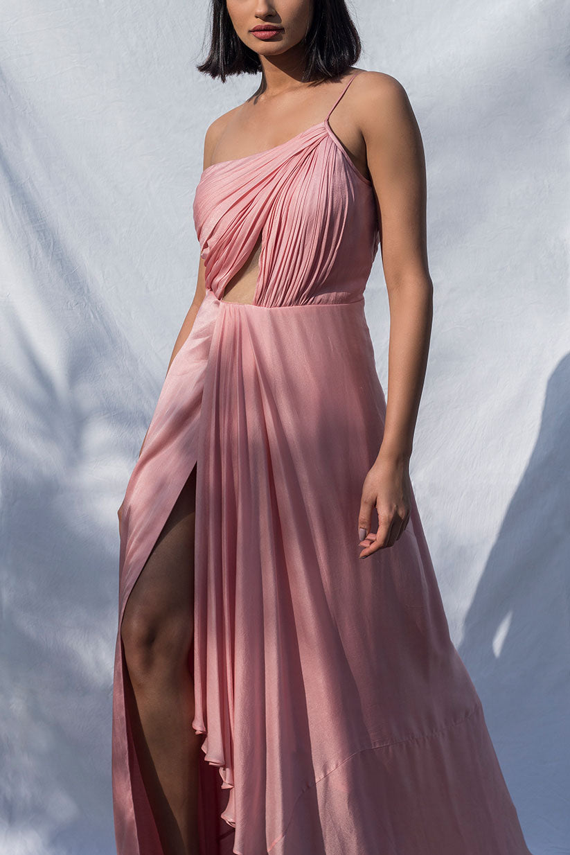 Pink Pleated One Shoulder Dress