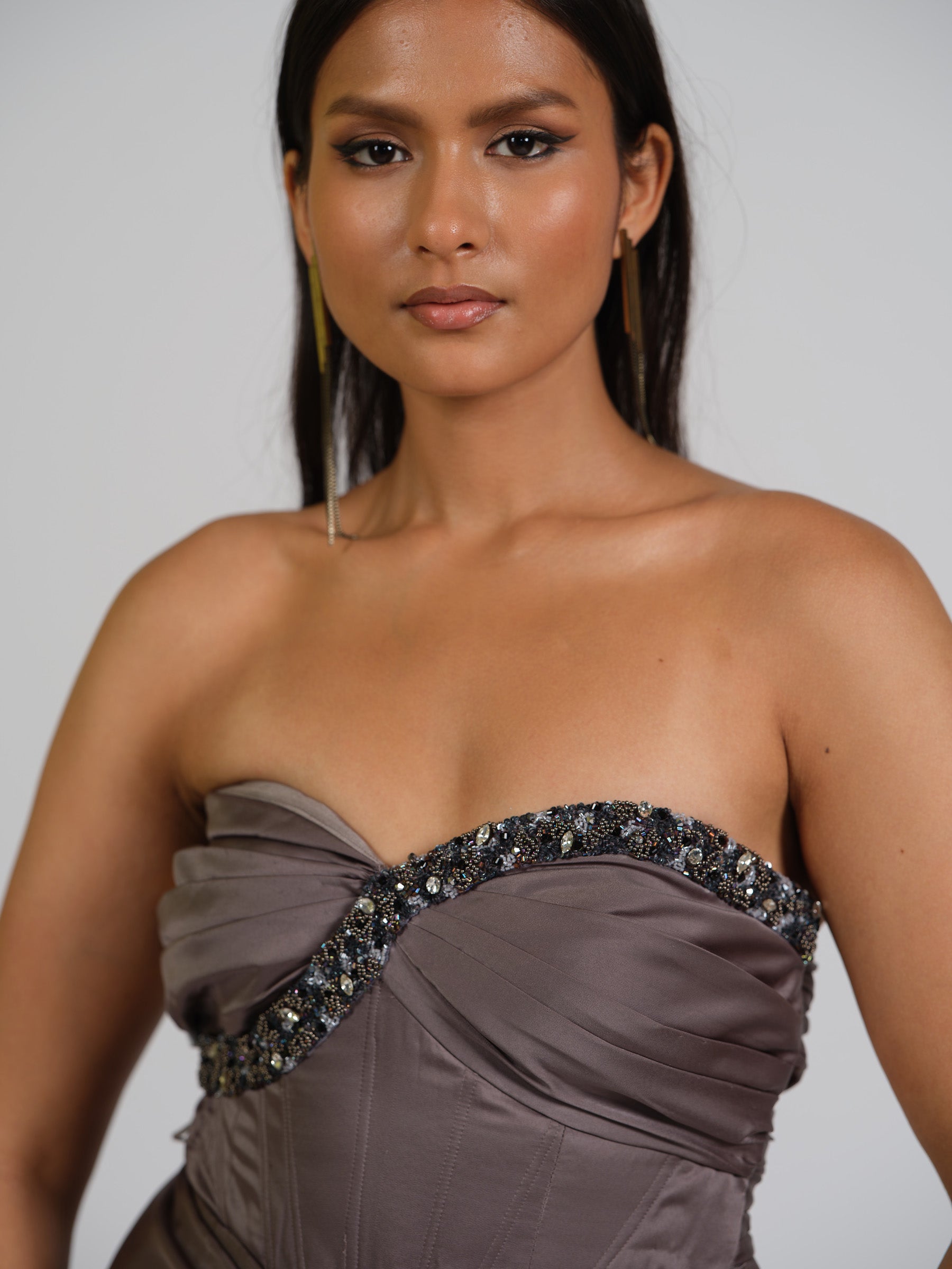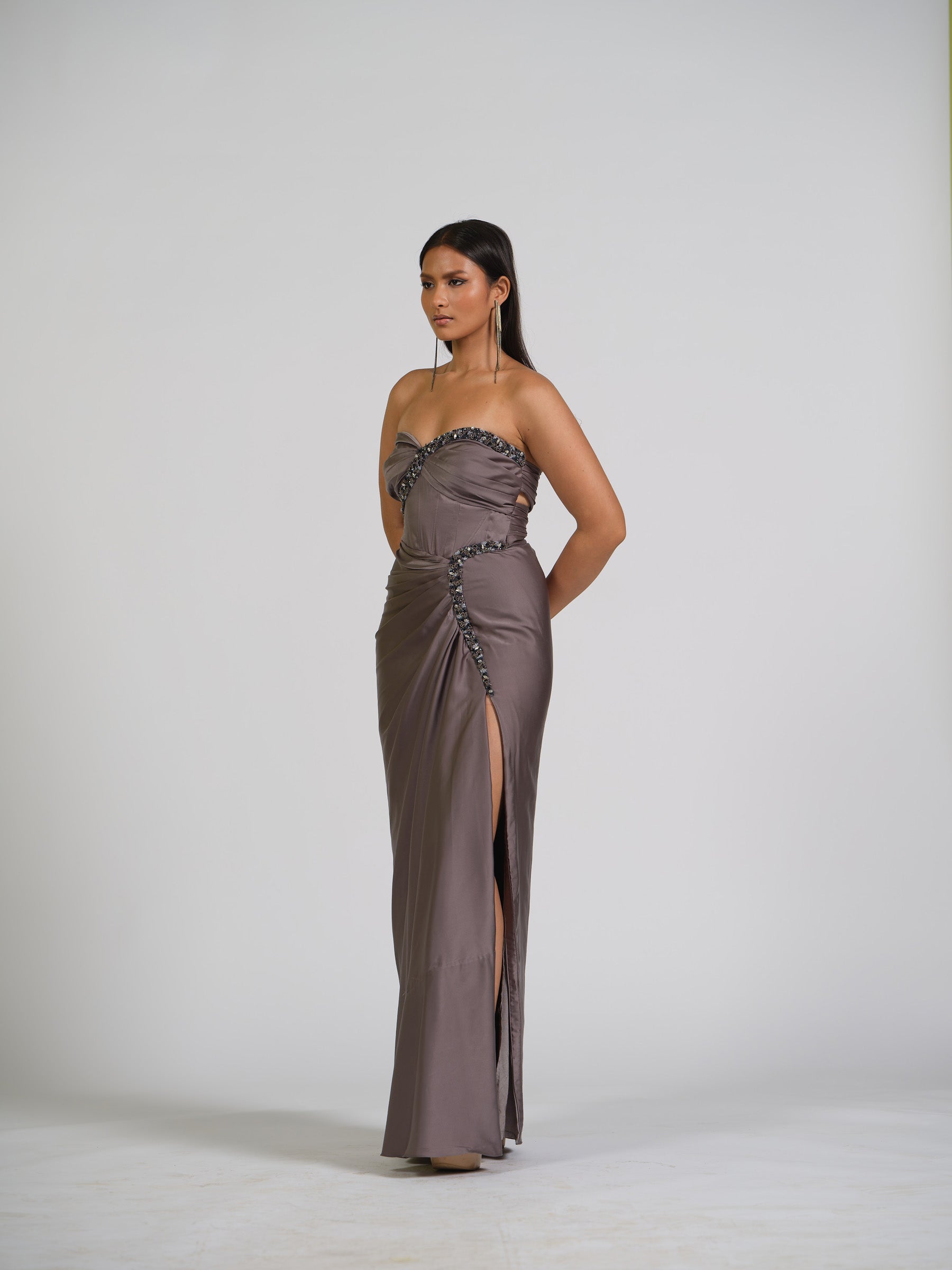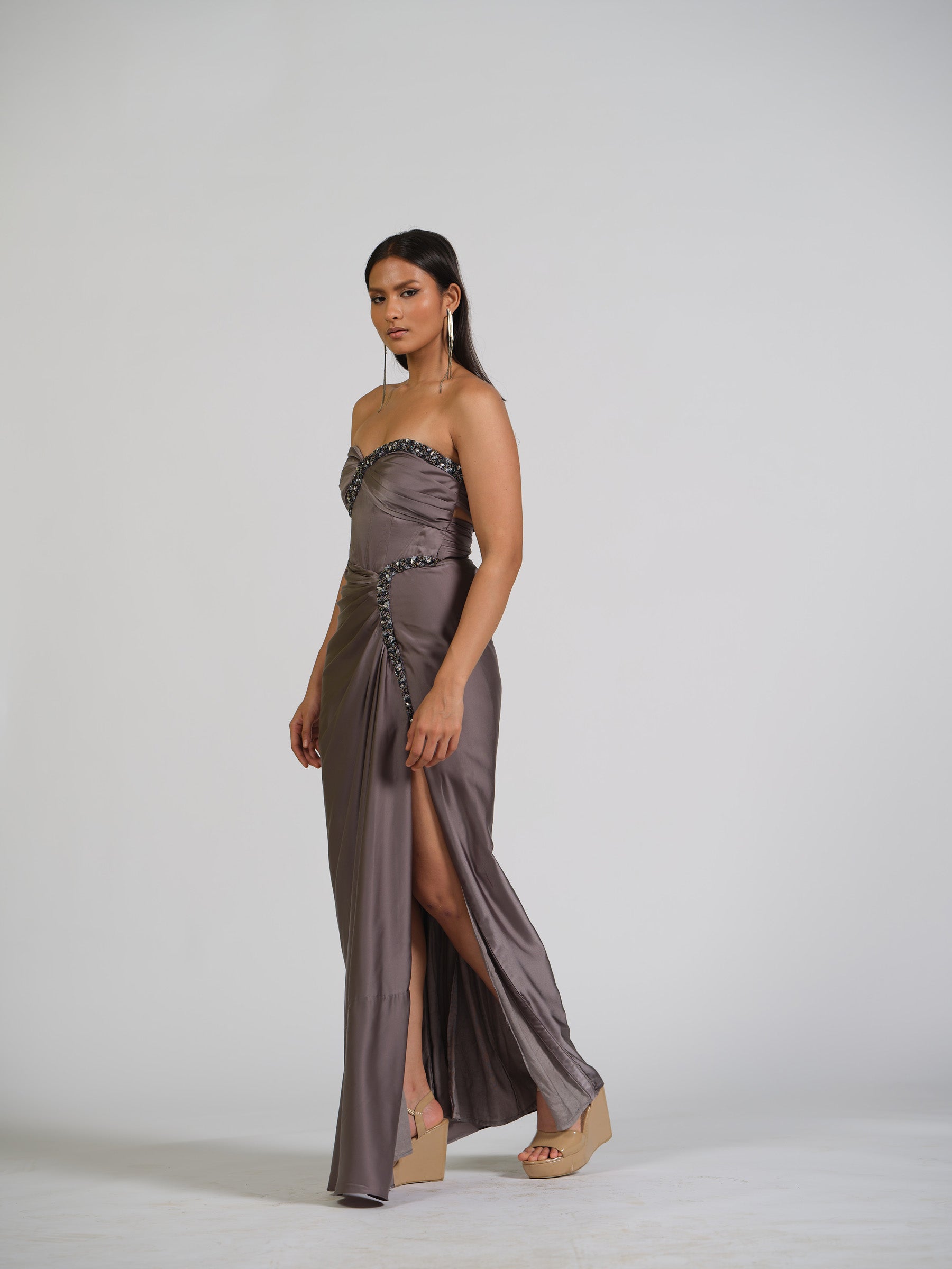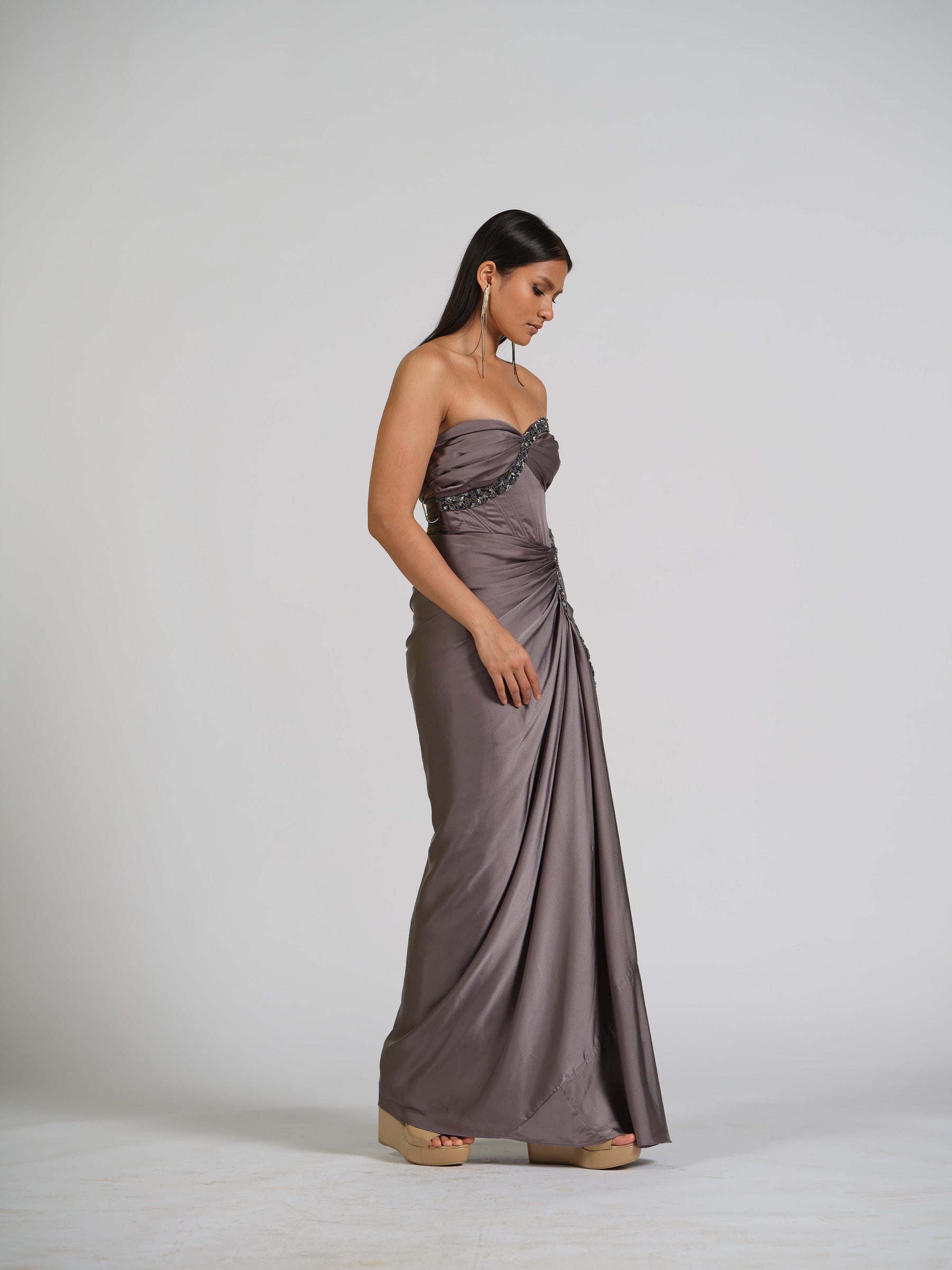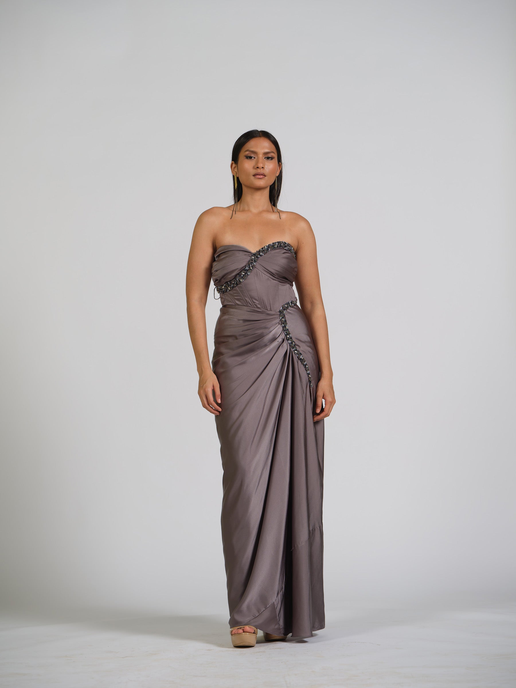 Sasha Corset Tube Crystal Embellished Gown With Side Drape