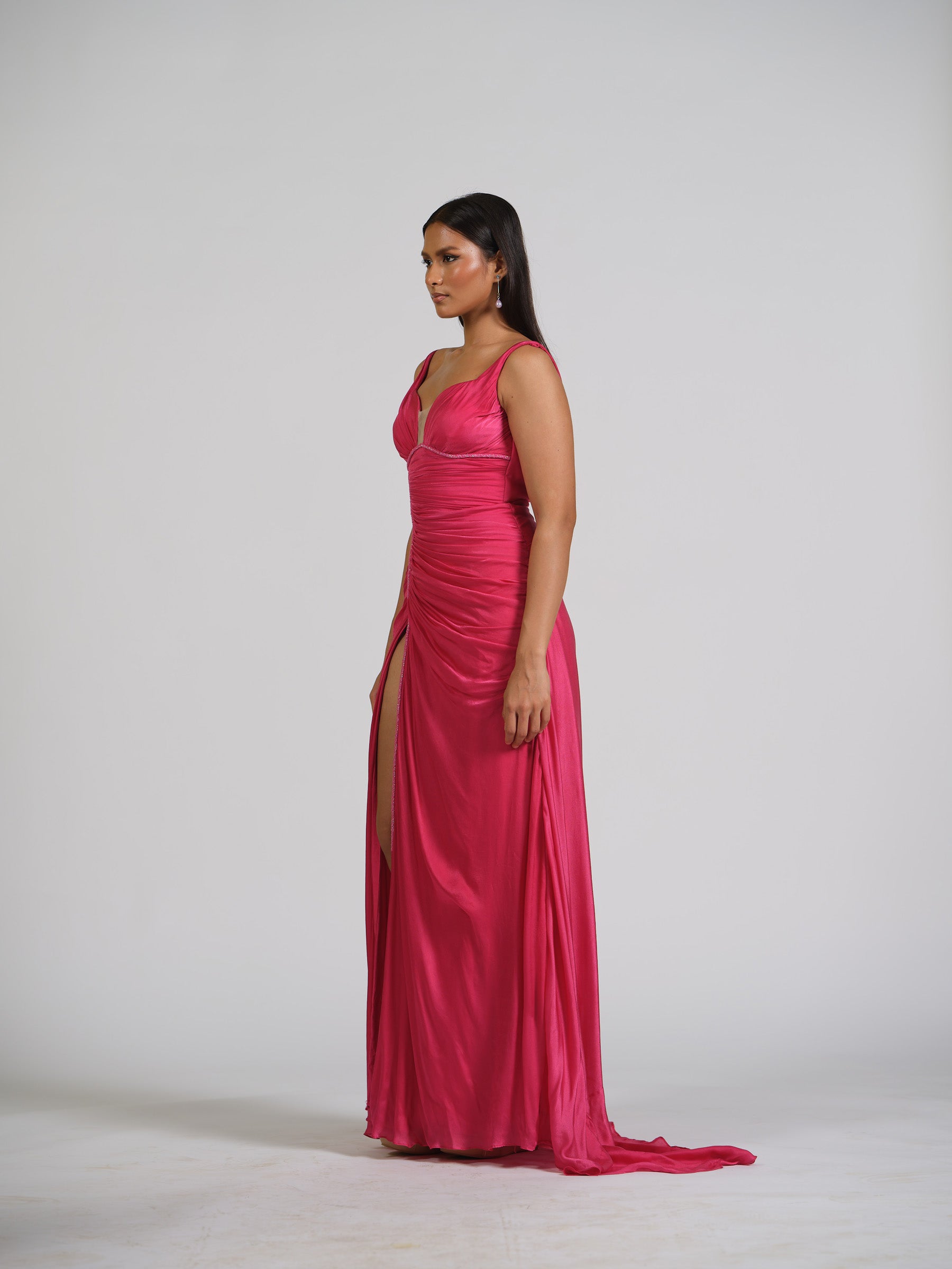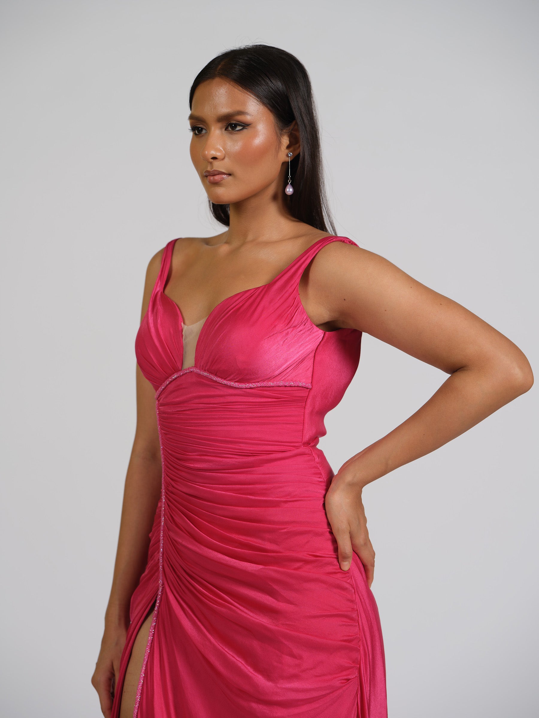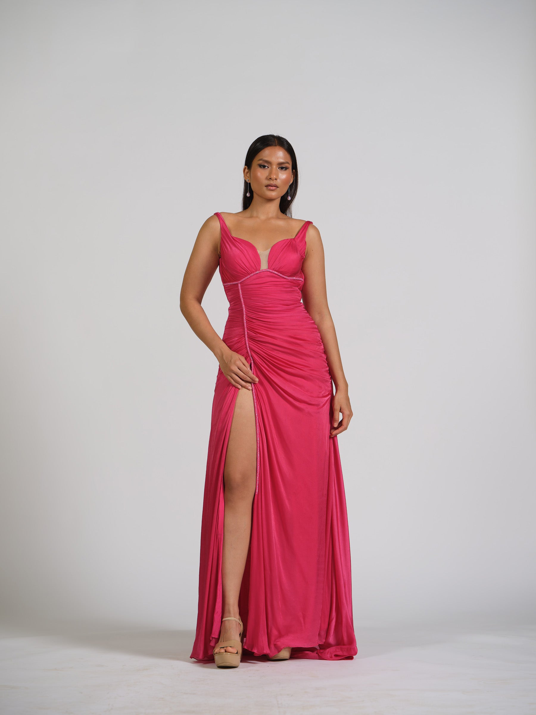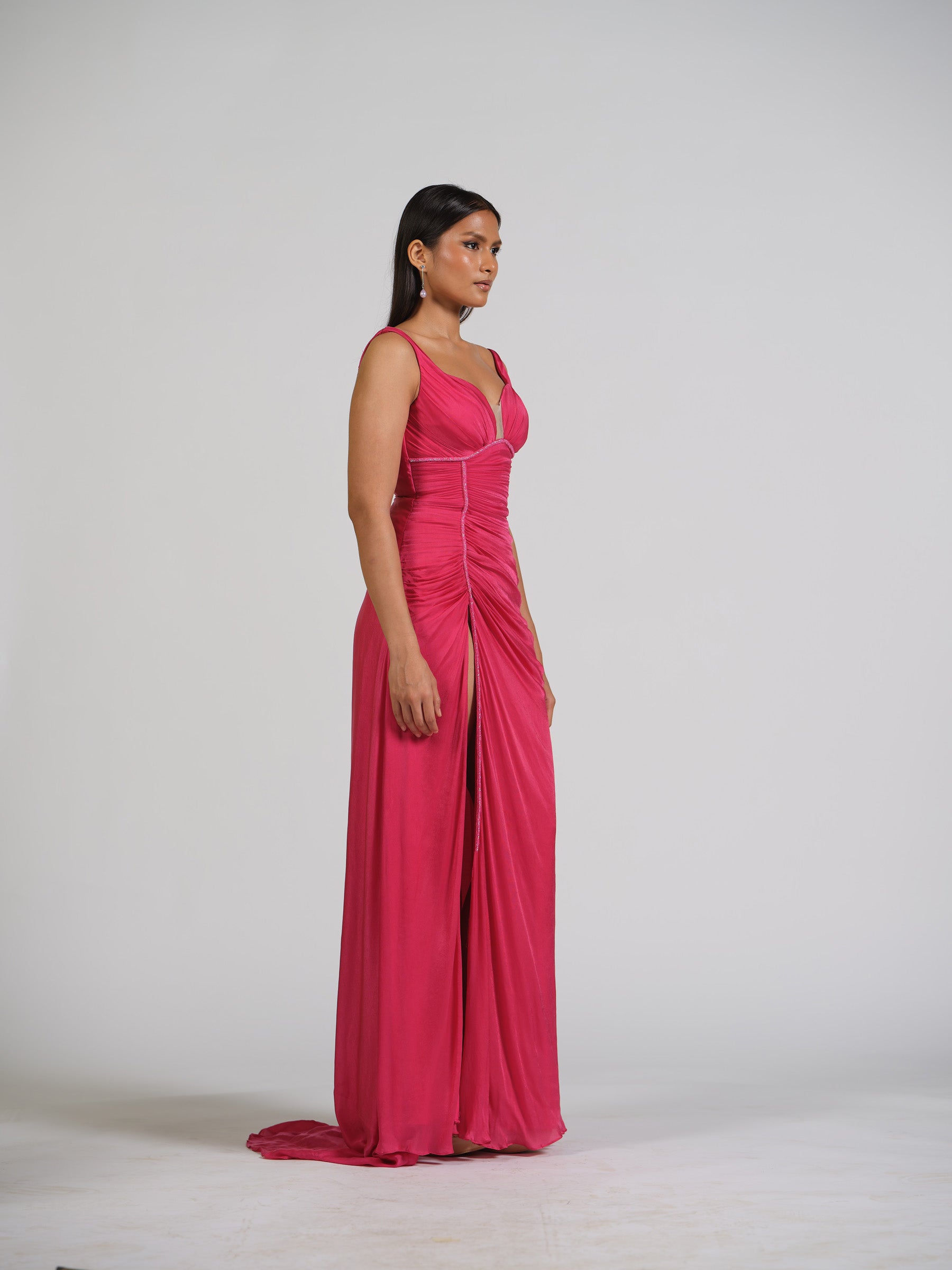 Zarine Gather Gown With Waist Gathers Flared Gown With Back Zip