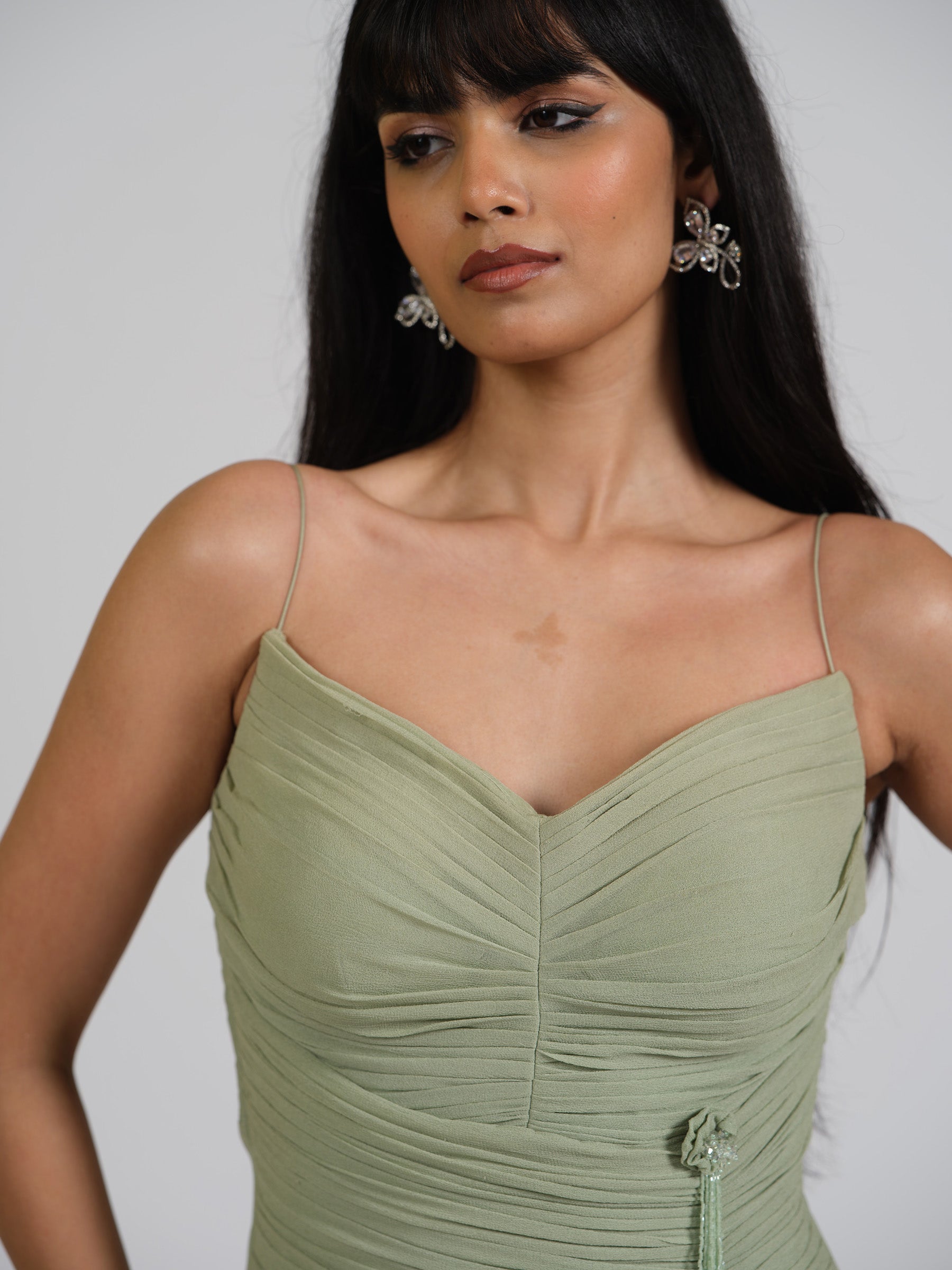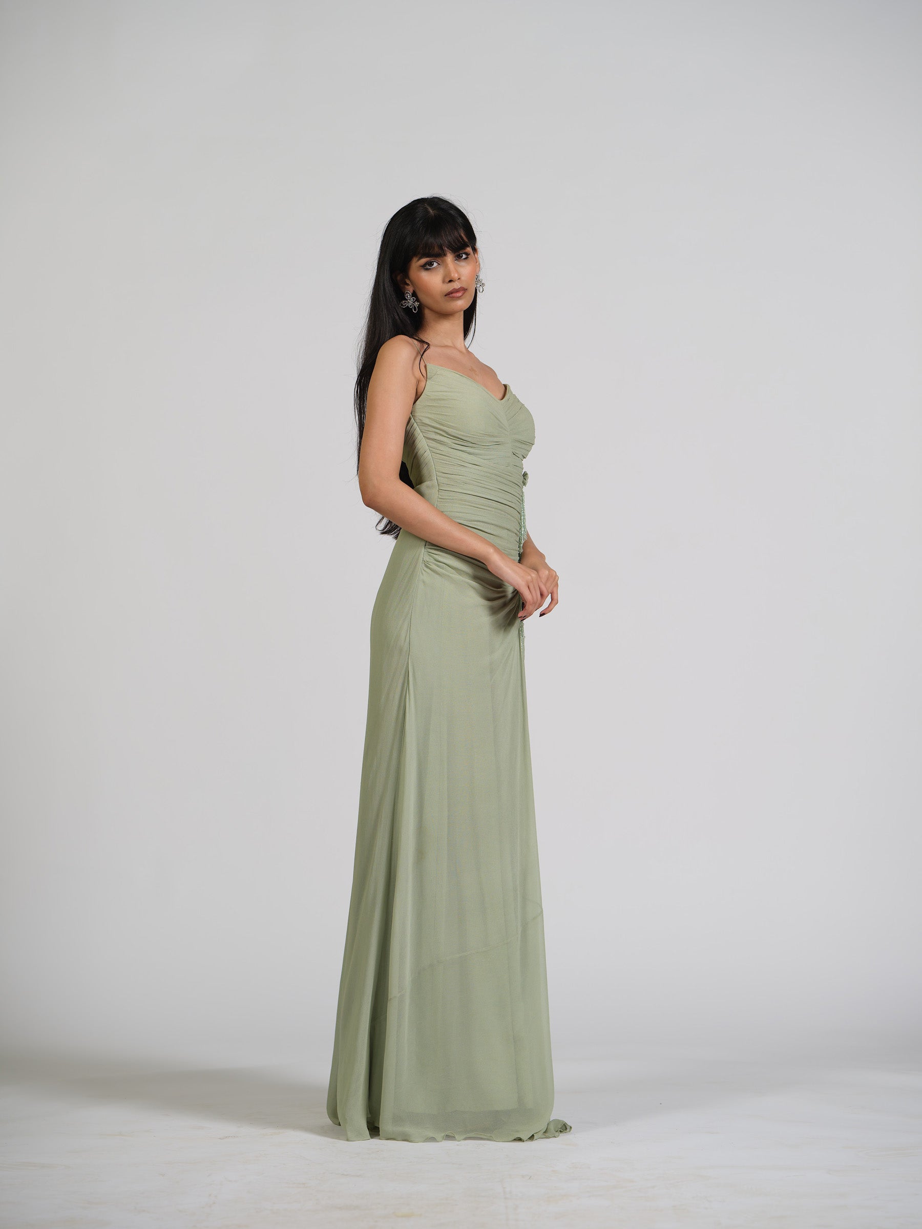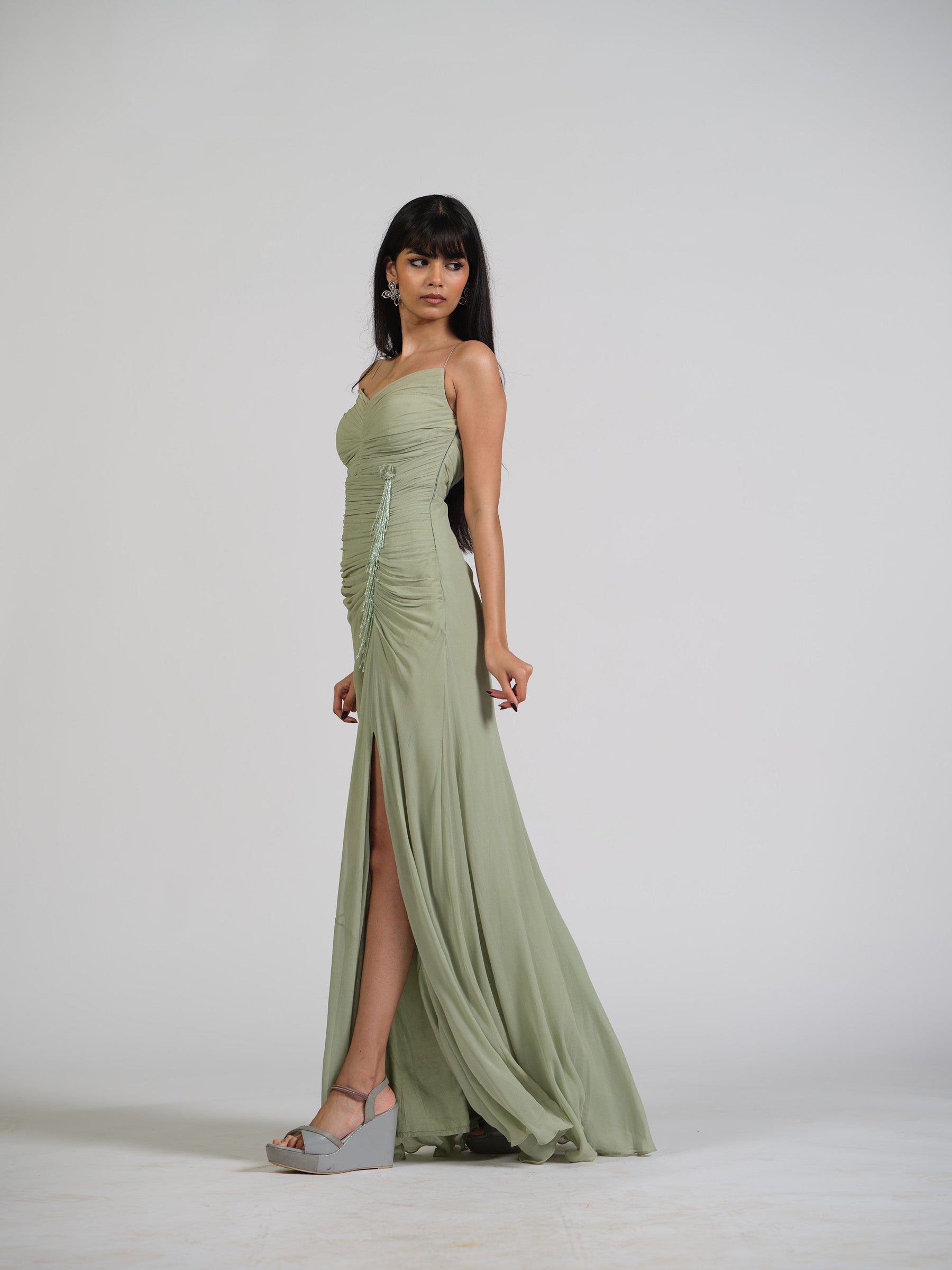 Zuan Drape Waist Gather Gown With Falling Crystals On Waist