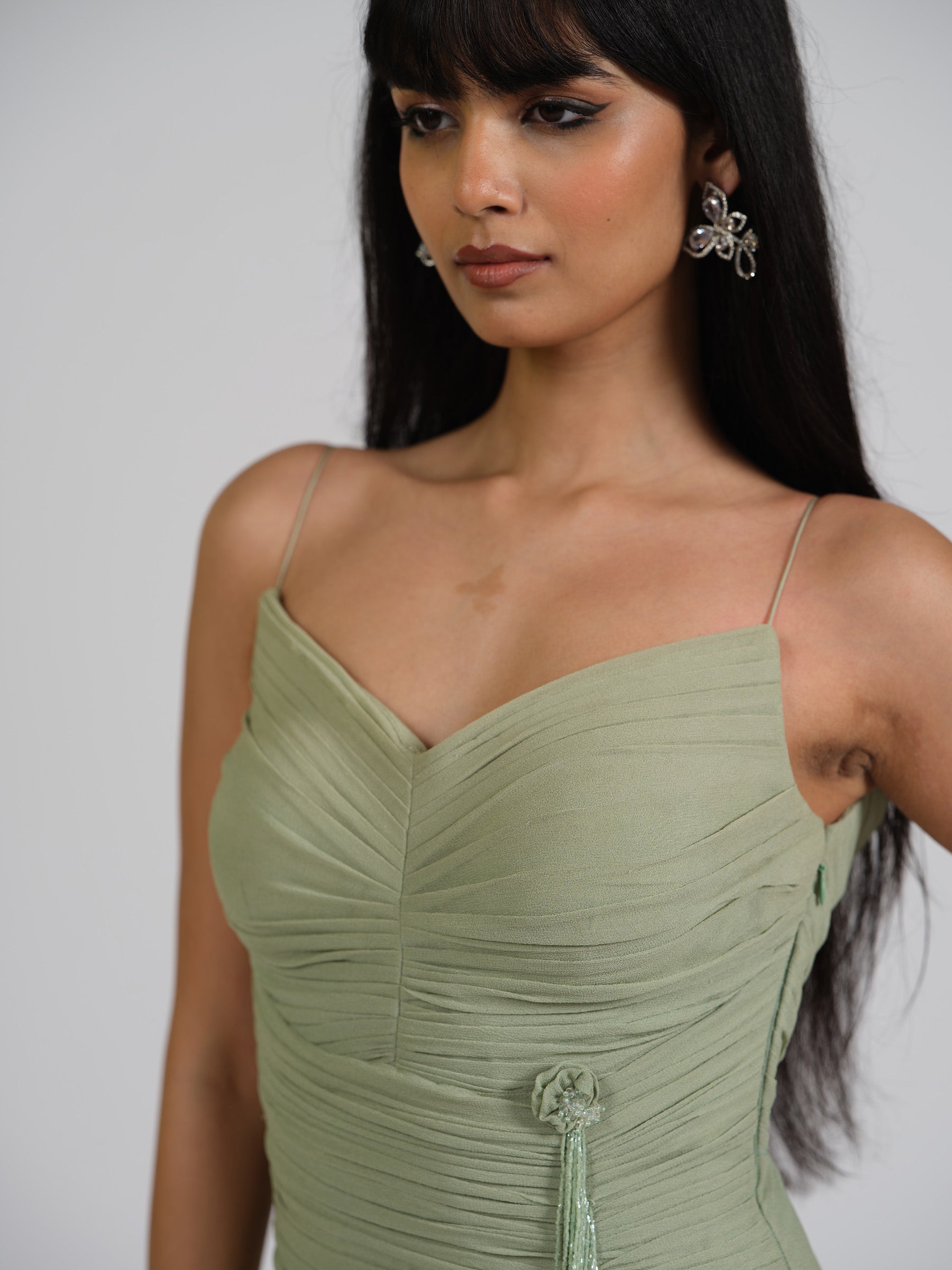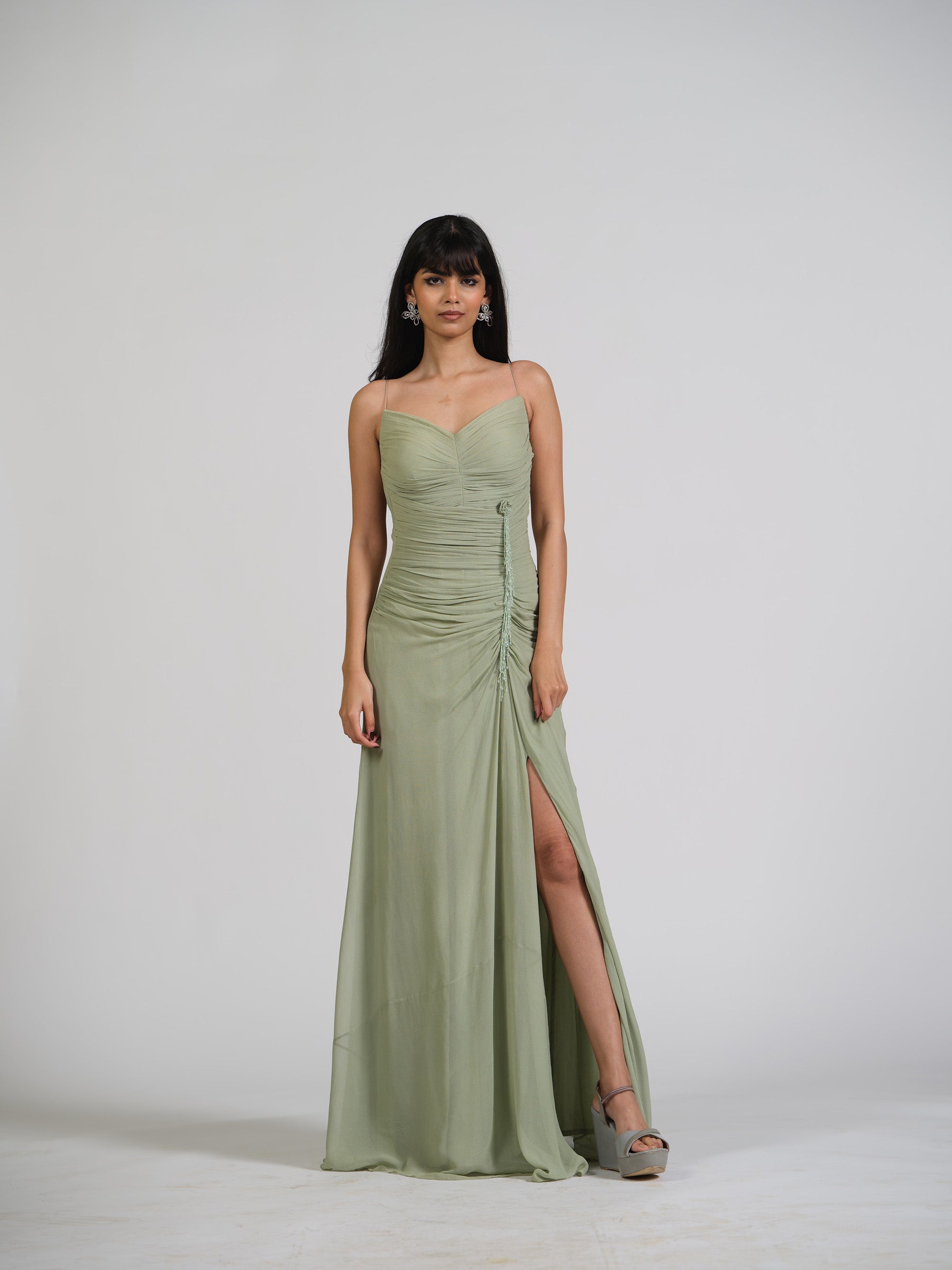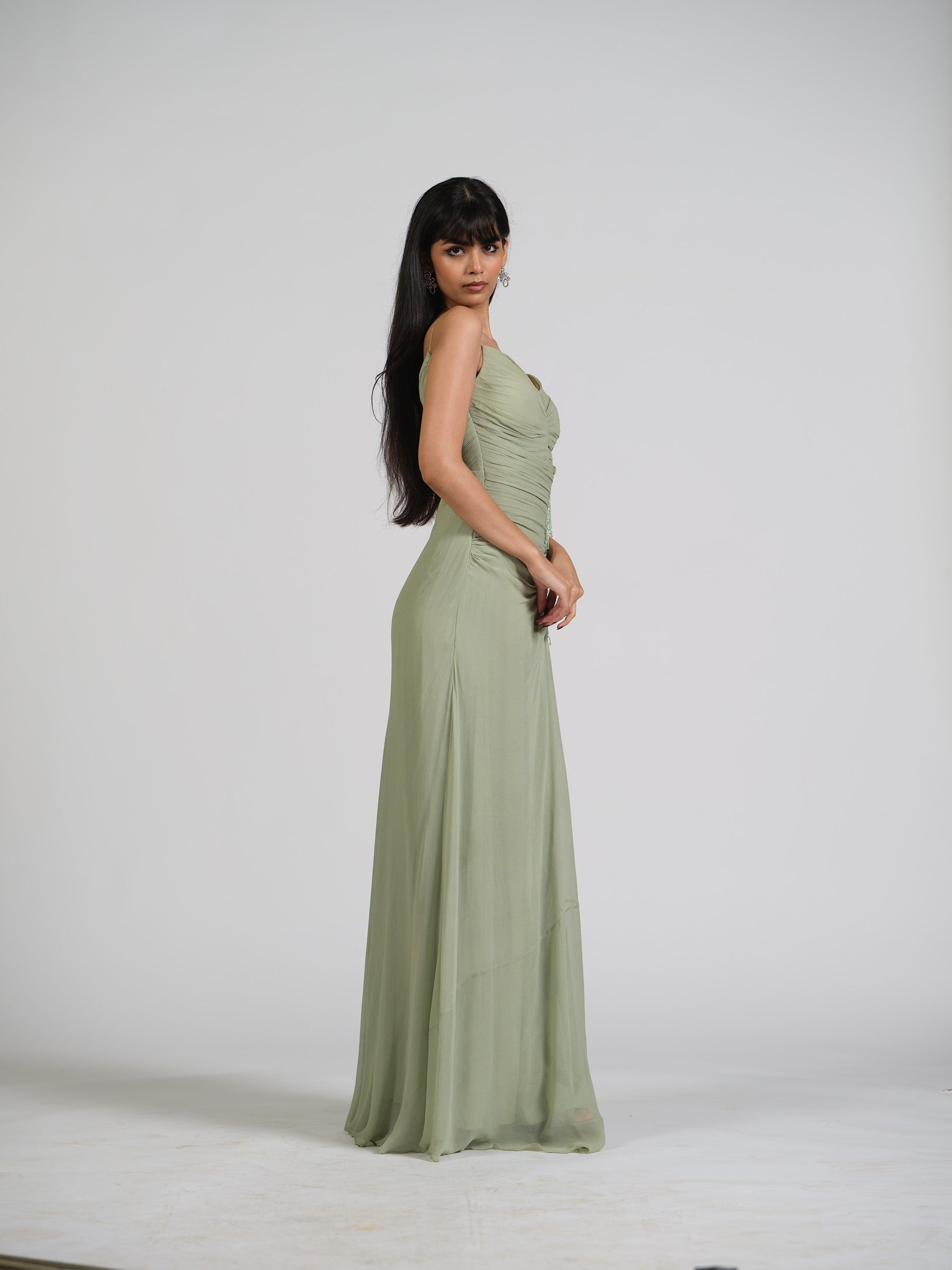 Zuan Drape Waist Gather Gown With Falling Crystals On Waist